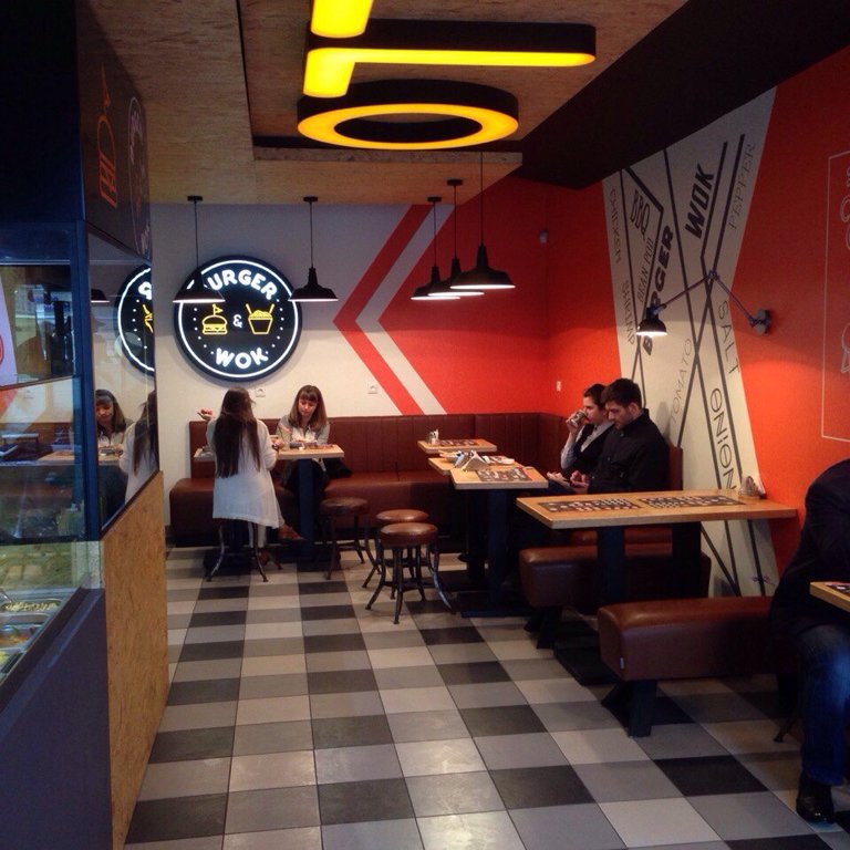 По адресу Невский пр. 112 расположилось кафе Burger & Wok. Для себя я давно уяснила, что живя в Санкт-Петербурге, бывать на Невском нужно часто, не только потому что это яркая и сочная сердцевина прекрасного города, но и потому что примерно раз в два-три месяца открываются двери нового ресторана или кофейни. На это раз пришла очередь этого красавца.
