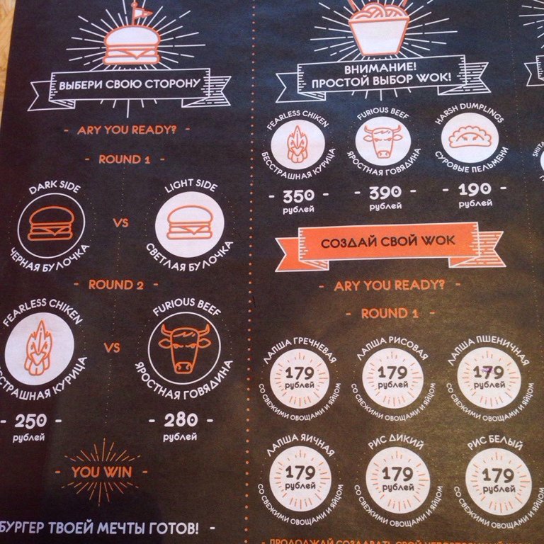 Но, хочу заметить, что цены тут кусаются! За один вок готовьтесь выложить в районе 400₽ и больше. Все это из-за того, что все добавки к гарниру (два вида риса и четыре вида лапши) стоят дороговато! Обычный рис с курицей будет стоить примерно 270₽ а если захотеть добавить тофу, грибы и лучок, вот и приехали, 400₽ как не бывало.